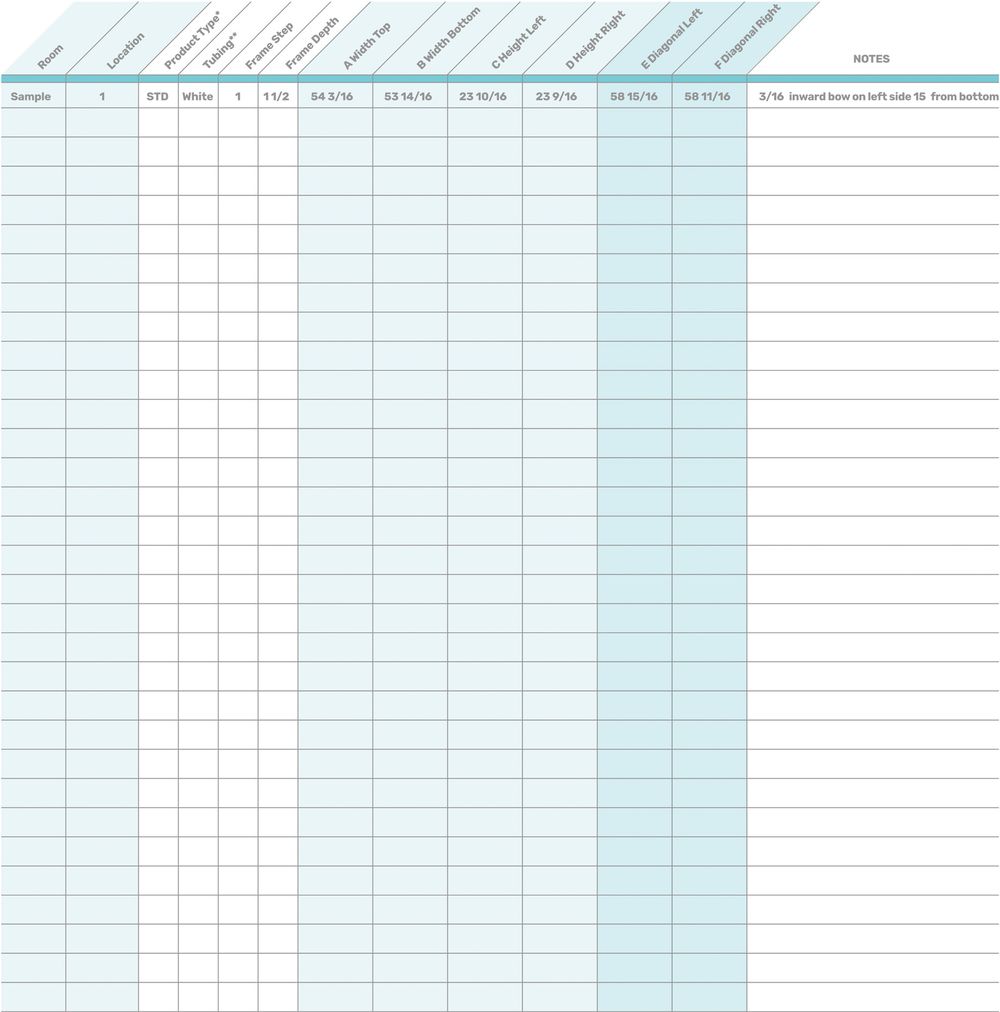 Record values here as they appear on the Laser Measure Tool display. Retain this document for your records until you have installed your inserts and verify they fit properly.