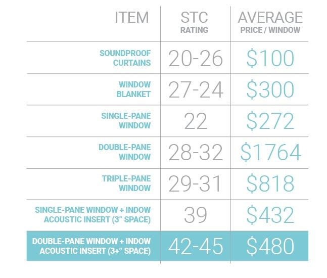 The prices below are average for that type of window and may include installation costs. For example, the double-pane window cost is taken from Remodeling and is based on a 3×5 window. We tried to find windows that would have comparative STC ratings.
